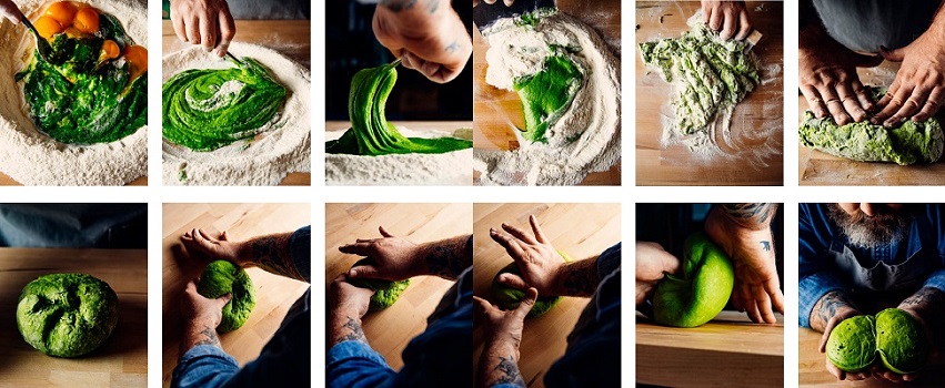 AMERICAN SFOGLINOهر توپ خمیری را در وسط تکه پلاستیک خودش به اندازه 12 اینچ [30.5 سانتی متر] مربع قرار دهید. هر بار با یک خمیر گرد شده کار کنید، یک گوشه پلاستیکی را به سمت بالا بکشید و روی آن قرار دهید. سپس، در حین حرکت، آن را بچرخانید، 15 تا 20 گلوله درست کنید، تا زمانی که کاملا محکم شود، تقریباً مانند بسته بندی آب نبات. روکش پلاستیکی، خطوط خمیر را دنبال میکند، که باعث ایجاد فشار یکنواخت از همه طرف میشود و از ایجاد یک سطح صاف یا لبه سخت در هنگام پیچیدن خمیر جلوگیری میکند. توپهای خمیری را کنار بگذارید تا 2 تا 3 ساعت در دمای اتاق بماند و یا قبل از رول کردن آن 24 ساعت در یخچال قرار دهید. خمیر تا 2 روز با پلاستیک در یخچال میماند. آن را منجمد نکنید. قبل از رول کردن، خمیر را در پلاستیک بپیچید و حدود 30 دقیقه روی پیشخوان قرار دهید تا به دمای اتاق برسد. رعایت کردن این مورد برای خمیر تخممرغی که در یخچال بوده، لازم است.