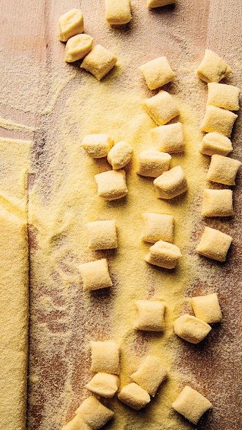 AMERICAN SFOGLINOگنوکی ریکوتادامپلینگ ریکوتادر حالی که احتمالا گنوچی های سیبزمینی دی پاتاته (di patate) ، بیشتر در خارج از ایتالیا شناخته شده اند، کوفتههای ریکوتا یک غذای اصلی در امیلیا رومانیا هستند. هر دو، اندازه ای لقمه ای دارند و با انواع سس ها خوشمزه می شوند، اما ریکوتا که بر پایه ی سیب زمینی است، بسیار نرم تر است. گنوکی دی ریکوتا (Gnocchi di Ricotta) با ریکوتای گازدار درست میشود که بافت نرمی به پاستا میدهد و با گنوکی طعم خوشی به سس می دهد. من از ریکوتای شیر گاو برای تهیه آنها استفاده می کنم، زیرا پایتخت پنیر شیر گاو در جهان، امیلیا رومانیای است، اما این دستور غذا با انواع دیگر ریکوتا نیز به خوبی کار می کند و شما می توانید آن را کاملاً جایگزین گوسفند، بز یا حتی پنیر شیر گاومیش کنید. همانطور که روی خمیر کار می کنید، می توانید متوجه شوید که چه زمانی به درستی ورز آمده است، اگر زمانی که آن را به آرامی فشار می دهید، تا حد کمی به عقب برگردد، ورز یافته است. نکته کلیدی این است که باید گلوتن کافی برای نگه داشتن آن داشته باشید و در نتیجه ماکارونی سبکی داشته باشید.