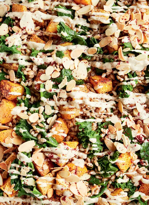 جایگزینها سیبزمینی شیرین یا هویج را میتوانید جایگزین کدوتنبل کنید و اگر نمیتوانید فارو را تهیه کنید، میتوانید آن را با گندم آلمانی، فریکه (freekeh) یا بلغور جایگزین کنید. این سالاد با افزودن چند قاشق پنیر ریکوتا یا پنیر بز خوشمزه تر خواهد شد.