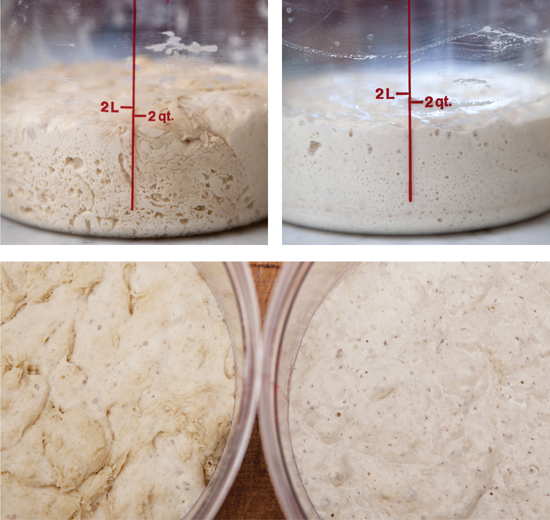 FLOUR WATER SALT YEASTهنگام استفاده از تخمیرهای اولیه، مهم است که اجازه دهید آنها به طور کامل برای رسیدن به طعم و مزه بهینه رشد کنند، اما نه بیش از حد. پیش تخمیرها اگر بخواهند تأثیر مفیدی روی نان داشته باشند به حداقل چهار ساعت زمان نیاز دارند. هنگامی که در اوج خود است، یک تکه بزرگی نیاز دارد روی آن حبابی و کمی گنبدی شکل است و بوی شدید الکل و مخمر می دهد. یک بیگا بیش از حد توسعه یافته فرو می ریزد، که تشخیص آن آسان است. به درستی توسعه یافته است پولیش در بالای آن بسیار حبابدار خواهد بود و اگر به آن خیره شوید، هر از گاهی حبابهایی را خواهید دید که در بهترین حالت است. مانند بیگا، آن نیز بوی الکل و مخمر خواهد داشت. یک پولیش بیش از حد توسعه یافته نیز به طور مشهودی فرو می ریزد.