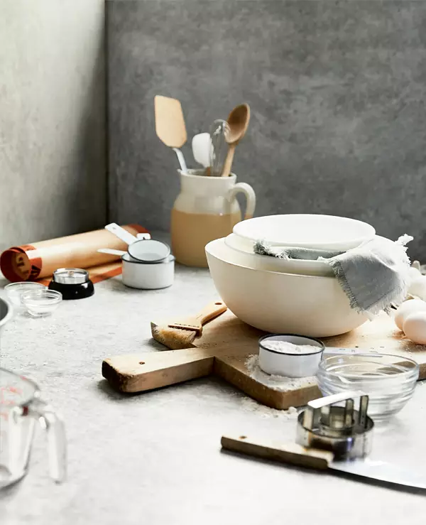 هم‌زن ایستاده (کاسه‌دار) با پره اضافه هم‌زن، لیسَک و خمیرزن: برای پخت نان یک هم‌زن ایستاده ضروری است. من با دست هم خمیر درست کرده‌ام اما مطمئن باشید که این روشی نیست که بخواهید از آن استفاده کنید. تهیه خمیر رقیق با هم‌زن ایستاده به مراتب سریع‌تر و راحت‌تر است. این دستگاه نوعی سرمایه‌گذاری است اما به شدت مهم است و البته من عاشق ابزارآلات آشپزخانه‌ام هستم.