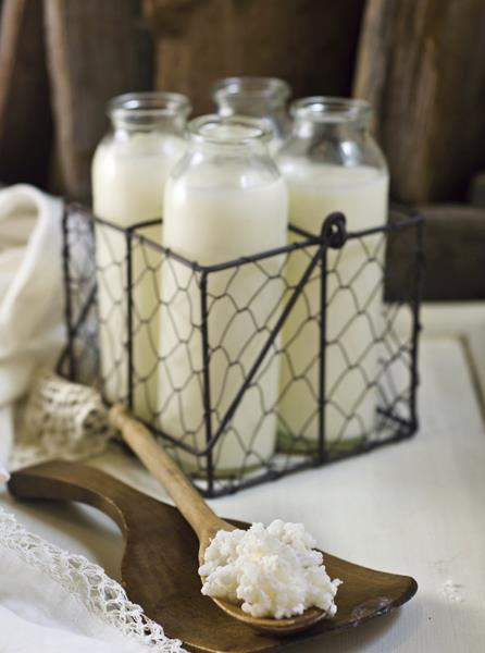 - دانه های کفیر را در یگ ظرف به اندازه یک کوارت (تقریباً يك لیتر) بریزید. داخلش شیر بریزید و در آن را محکم ببندید.