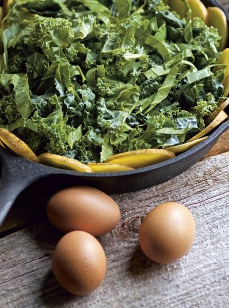من دوست دارم سبزیجات غنی از تخممرغ را برای ناهار یا برای یک شام سبک سرو کنم. بسته به چیزی که در یخچال ما قرار دارد، انبوهی از آن را با یک قاشق سبزیجات تخمیر شده روی بشقابها قرار میدهم. هر از چند گاهی سیبزمینیهای نازک ورقه شده را جایگزین خمیر آردی میکنم. ظاهری جذاب ایجاد میکند و سیبزمینیها با پختن نرم و لطیف میشوند. این پایها شامل سبزی ها و گیاهان، مورد علاقه ما است – به ویژه چغندر، کلم برگ، جعفری و آویشن – گرچه سبزی خردل جایگزین خوبی برای چغندر یا کلم پیچ است.
